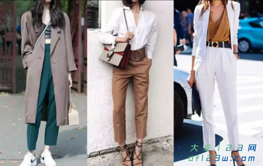 西装外套搭配吸烟裤就很有职场风范了,随便搭 配一件衬衣或是西装外套就很有乞质,非常实穿 的职业装。