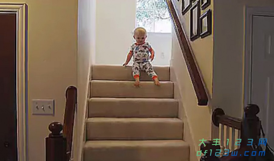 终于,宝宝成功的滑倒了最后一节台阶,成功的到了楼下的地面上,此时的爸爸看到宝宝到了这,还以为宝宝直接从楼上滚下来了,可是他看到宝宝浑身没有一点伤,后来查看录像发现宝宝是自己用自己的方式下的楼。