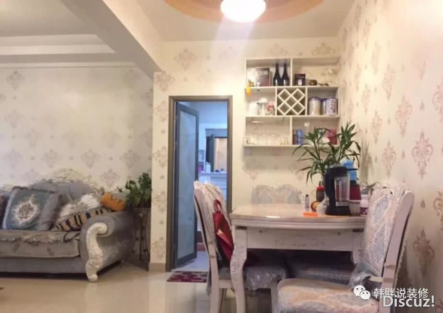 这是一套90平米两居室户型,装修的事情交给一向大手大脚的媳妇来负责。原本预算10万的装修,到完工的时候居然花了15万,一些没必要花钱的地方都花了,真是个败家娘们! 面积:90平米 格局:两室两厅一厨一卫 风格:简欧风格 装修:15万 餐厅和客厅是开放式的,地板铺的是瓷砖,墙上贴了一层墙纸,吊顶就一圈简单的灯带,走的是简洁清新的路线。电视背景墙也是用瓷砖材料进行装饰,装修师傅还是有点手艺的,简单的瓷砖转出了不一般的感觉。
