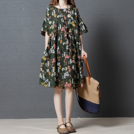 大码棉麻连衣裙 根据亚洲人体结构剪裁,贴心别致的细节彰显出了大牌的品质。简洁轮廓的版型设计,宽松大码,