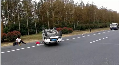 10月20日早上,G228国道大丰境内,大中农场附近一辆正常行驶的轿车突然失控翻车,二人被困车内,驾驶员已受伤。轿车驾驶员立即报警,交警和医疗急救人员第一时间赶往现场处置。 事故现场驾驶员捂着头坐在路上,一辆白色的轿车四轮向上躺在路上,车里物品撒落一地,左侧和后面挡风玻璃已被撞碎。 据该车驾驶员介绍,他当时由北向南正常行驶,开着开着就瞌睡了,然后不知不觉的车子开到路边路牙上,他听响声不对睁开眼一看,车子就要开到路下面了,他就向左猛打了一把方向,因车速过快车子一下失控翻在路上,二人当场被撞晕了困在车内。通过自救才从车内爬出来,坐在副驾驶位的人被撞伤。驾驶员说:“幸亏没有发生二次事故,不然后果不堪设想。” 随后交警对事故现场进行勘查后,调来清障车对事故车辆进行清理,及时恢复道路的畅通,具体事故原因有待警方进一步调查。(零距离论坛)