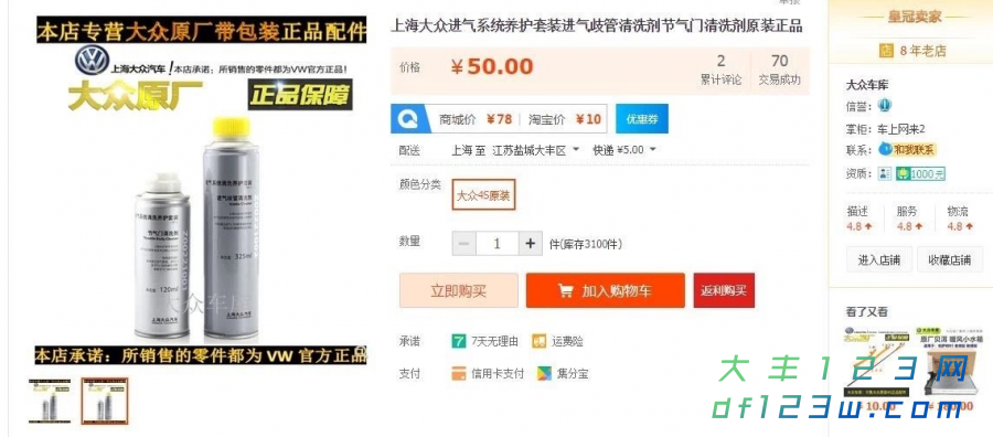 为了一探究竟这个清洗剂套件到底价值多少钱?小编搜索了淘宝网,网上商家报价从38元—50元不等。关于该商家是否存在价格欺诈?由相关部门认定为准!