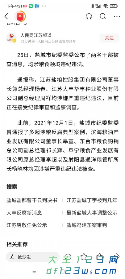 大丰华丰种业公司副总涉嫌违纪违规!