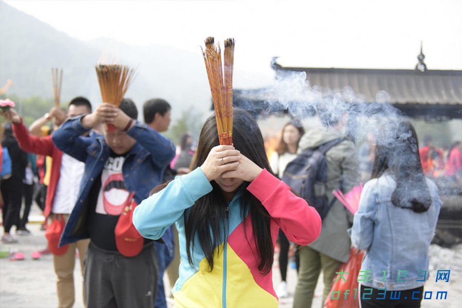 刚刚过去的旅游黄金周,五台山景区接待游客19.54万人次,众多信众蜂拥至此。图为五爷庙大殿前上香祈福的人们排起长队。