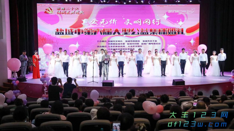 8月4日七夕节当天,“真爱无价 文明同行”盐城市第六届大型公益集体婚礼在盐城市大丰区荷兰花海景区举行,20对新人喜结连理,以简约文明又不失浪漫的集体婚礼形式,在美丽梦幻的荷兰花海景区共度人生重大时刻,以实际行动倡导文明、节俭的婚庆新风。 新娘穿着洁白的婚纱,与新郎手牵手,在浪漫的背景音乐中走上舞台,作为盐城市2022年“我们的节日·七夕”主题活动的一部分,本次活动由盐城市文明办、盐城市总工会、盐城市民政局、共青团盐城市委、盐城市妇联、盐城广播电视总台联合举办。在婚礼现场,新人代表宣读了《文明简约婚礼承诺书》,在践行办文明简约婚礼上迈出了庄重的一步。 活动中,新人们聆听了移风易俗青年婚恋观及家庭家风家教主题讲座。新人代表从全国劳模梁泽泉夫妇手中接过寓意爱情之火长燃的火炬。中国书法家协会会员、原盐城市书法家协会主席凌震三先生现场书写“真爱无价 文明同行”书法作品并赠送给新人代表作为活动礼物。20对新人一起上台共同浇灌寓意事事如意、百年好合的爱情树……简约而不简单的流程给新人们带来了浪漫的仪式感。