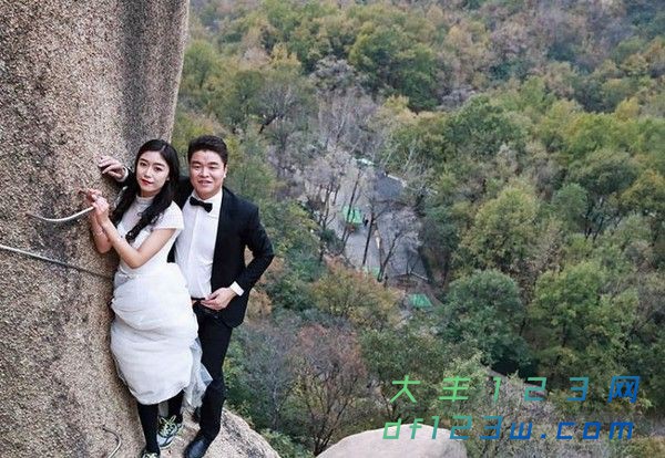 猪八戒在红圈处。 为了拍婚纱,你愿意做多大的牺牲?河南省遂平县一对新人跑到嵖岈山风景区,爬上135米悬崖卖命拍婚纱,还请来工作人员装扮唐僧师徒四人与仙女,合力重现《西游记》场景,虽然想法非常创新,不过拍照时仅能握住细绳,脚踩钢筋,稍稍恍神就会跌下去,让网友直呼“婚纱照不要紧,命更重要啊!”。 综合报道,嵖岈山悬崖曾是《西游记》外景拍摄地点之一,所以这对新来才会突发奇想爬上悬崖,请工作人员假扮唐僧师徒四人与仙女,一起入镜留下最美回忆。照片中,新娘穿着长白纱、摄影师也要扛机器,工作人员还要穿戏服或是携带装备,不管是拍摄者或被拍者,都必须更加小心,以免一失足成千古恨。 俯瞰图就能看出高度,让人捏一把冷汗。