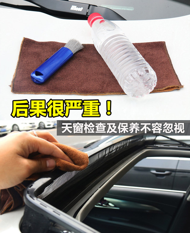 由于仅仅是对天窗部件进行简单的清理及检查,所以简单的小工具即可。我们并不推荐大家自己动手为滑轨进行上润滑油的操作,由于润滑油具有粘性,容易吸附灰尘杂物,处理不当反而会对天窗造成损坏。