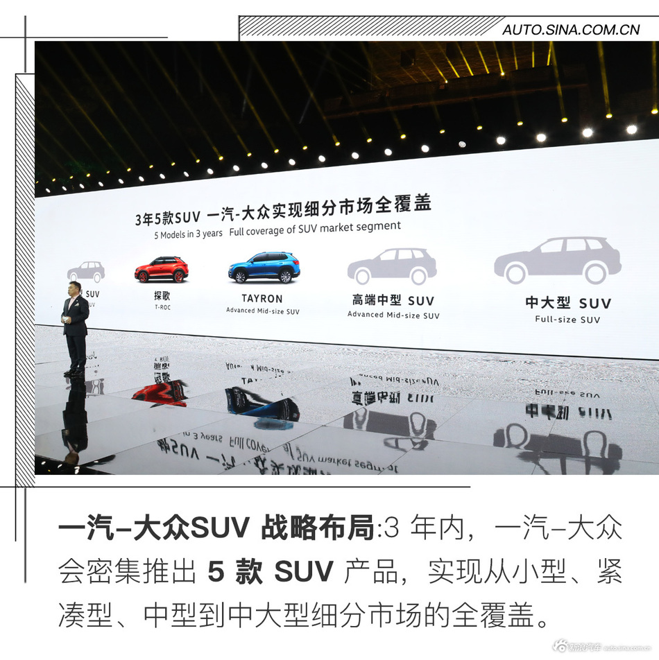发布会上,一汽大众还发布了该品牌的SUV战略布局,3年内将陆续推出5款SUV系列,实现从小型、紧凑型、中型到中大型细分市 场的全覆盖。除了 探歌 和 探岳 之外,另外 3 款 SUV 也将在2020 年之内上市; |配置|图库| 视频|口碑| 经销商
