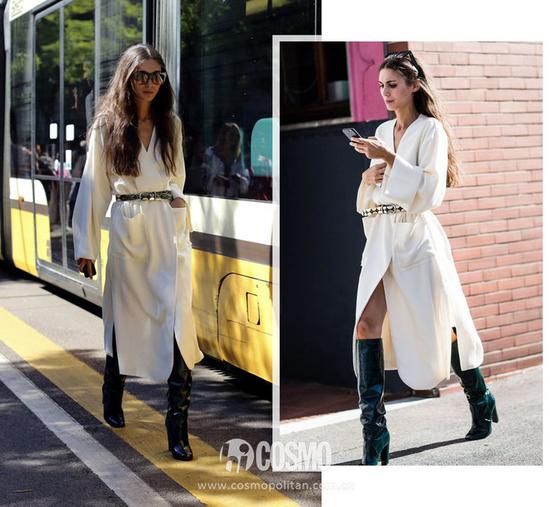 飘逸感十足的长裙配上中长靴,一下子就让女性味道十足的LOOK变得中性帅气起来。