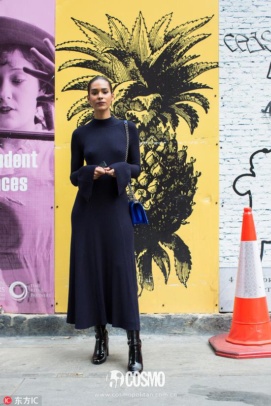 但需要注意的是,选择的连衣裙+靴子组合的时候,这两种单品的质感都要好一些,否则会显得拖沓缺失高级感。