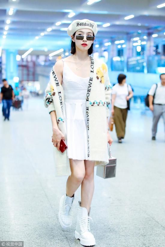 宋茜最近在机场用白色连衣裙搭配白色马丁靴,率性利落的同时不失少女气息。也适合初秋的搭配组合。