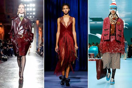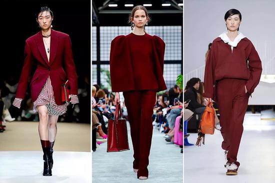 作为今年秋冬的流行色,在 2018 秋冬秀场里四处可见红梨色的踪影。