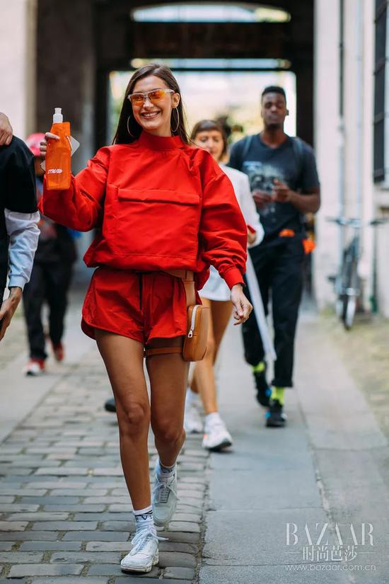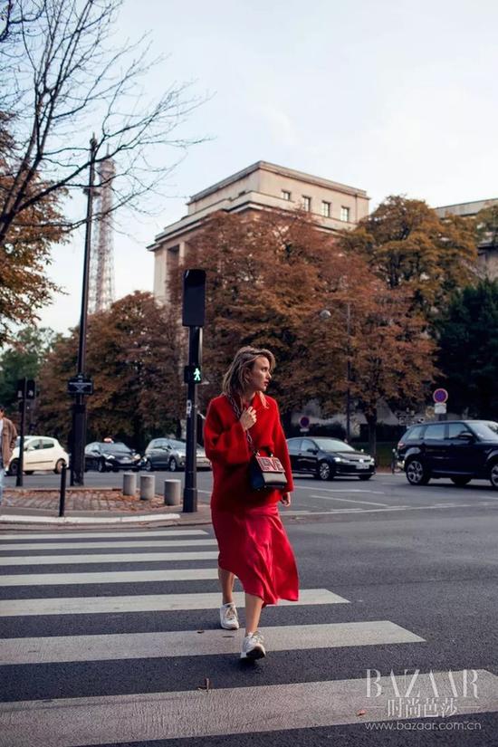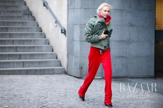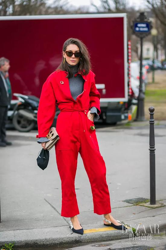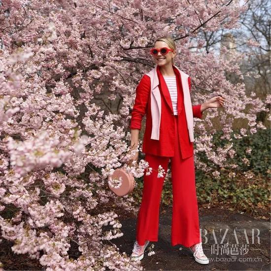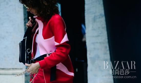 或是设计师已经搭配好的罂粟红套装,容易老气的通勤西装Look或运动休闲风都能明艳亮眼,毫不费劲地成为街上不容忽视的时髦存在。