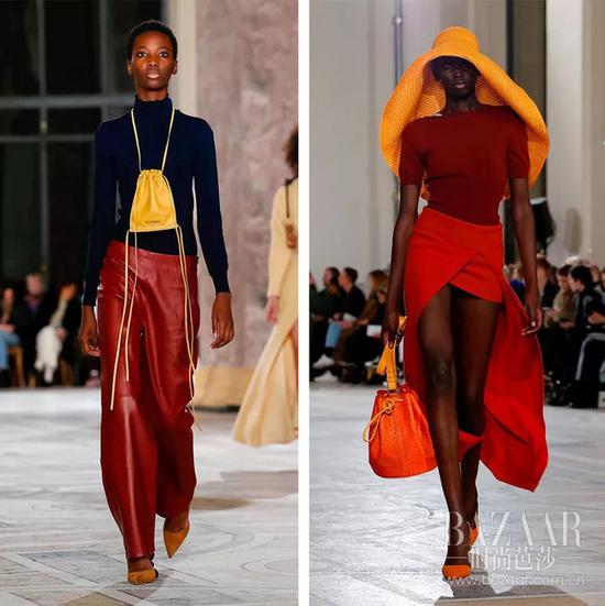 Jacquemus 2018秋冬秀场 鹅黄色上衣活泼又灵动,成功令红梨色的沉稳优雅“破功”,变得少女时髦。