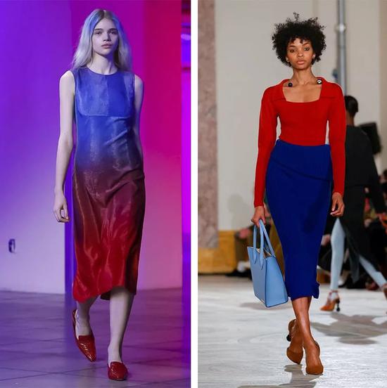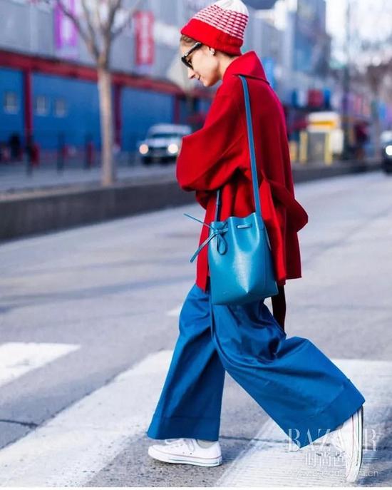 TIP.2 搭这四种色,只管精彩时髦 ▼ 搭蓝色 ▼ 自古红蓝出CP,红蓝相撞的配色几乎没有离开过时尚圈,那红梨色、罂粟红自然也不会错过红蓝配。