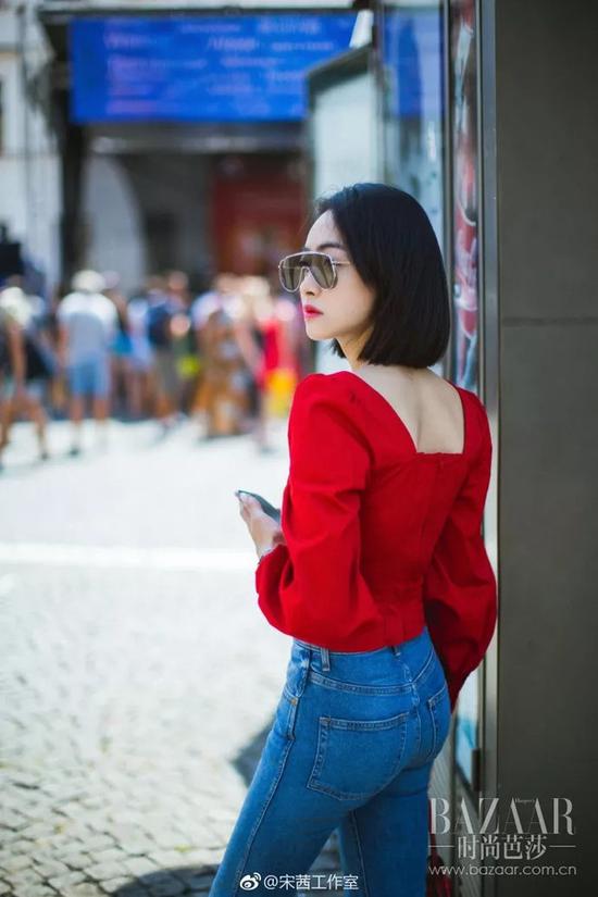 搭配罂粟红的时候,用与其同样明亮的牛仔蓝,朝气时髦自然不请自来。