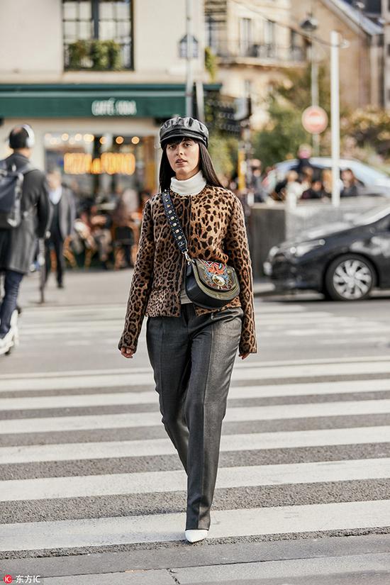 3、动物纹 将基本款的高领衫叠穿动物纹的开衫或者西装外套,高领衫带有的优雅气质和张扬的动物纹柔和在一起,提升了造型的质感也更加有时髦得很有层次。