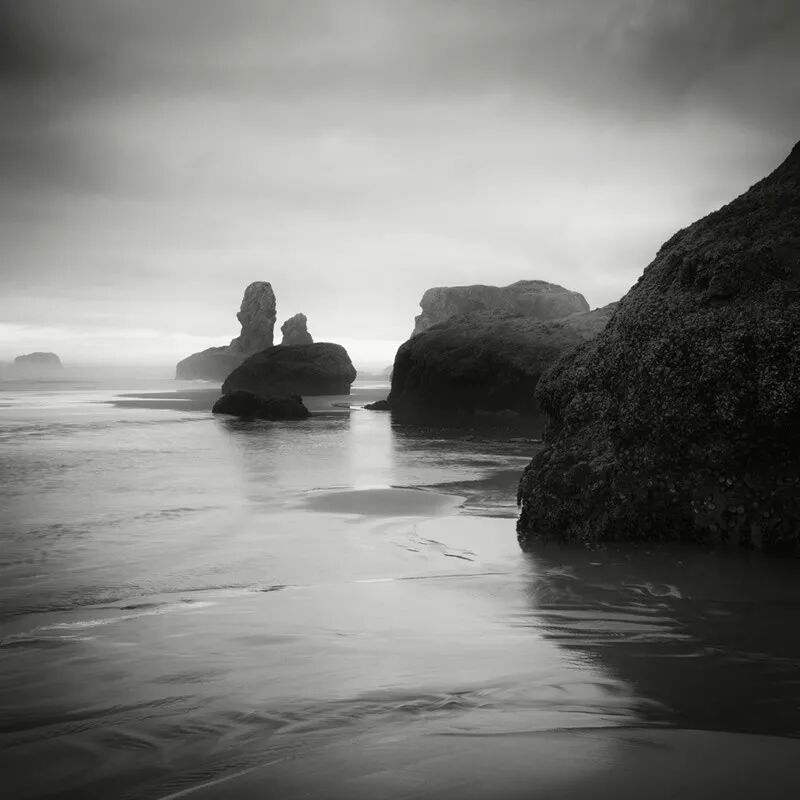 下面这组作品是他用黑白胶片创作的一组极具梦幻的风光摄影作品,从压抑的黑白画面中观众似乎又能够发现光的存在。
