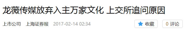 但早在今年2月16日,新华社就曾撰文点名万家文化,指出“壳公司”万家文化主营业务频繁变更,仿佛陷入一个亏损与跨界并购间循环的怪圈。