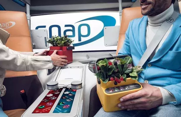 还可以种植物哦~ 底盘是由高耐磨材质打造的,上面安装了动力总成和硬件设备。 动力方面,Snap概念车将采用ZF的电动动力系统和双转向轴,并会配备225/35 R18轮胎。